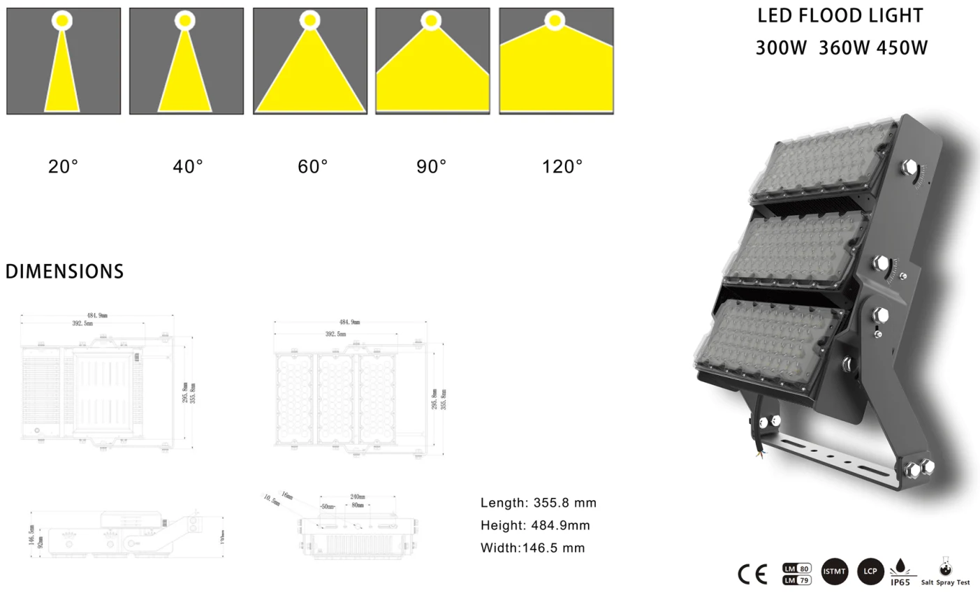 · 400 watt ve 500W metal halide armatürlerine eşdeğer aydınlatma ile "anında, titreşimsiz" soğuk bir başlangıç ve sektör lideri 155-160lm/w keyfini çıkaracaksınız.